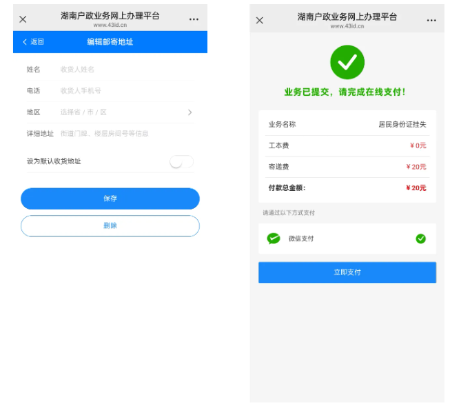 二、填写邮寄地址,缴纳邮寄费用