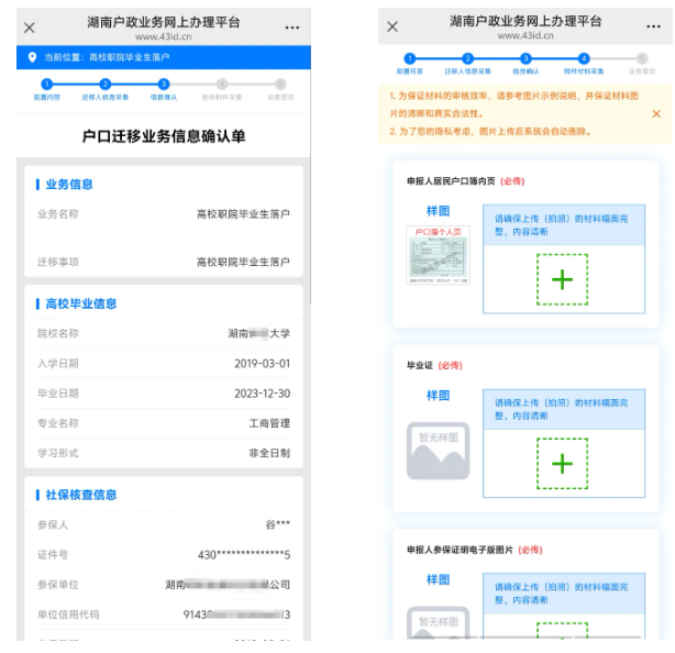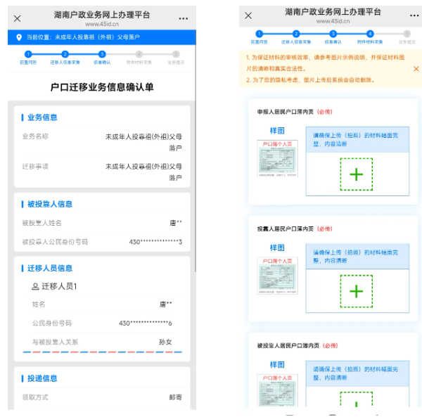 一、湖南户籍居民微信关注“湖南公安服务平台”公众号,注册并实人认证登录,点击“微警务”,进入平台首页,在热点应用栏中选择“户口业务全程网办”,或登录省政府“湘易办”APP首页,点击“户口业务全程网办”,点击进入湖南户政业务网上办理平台,在“我要办理”菜单中选择要申办的业务类型,阅读网办须知,填写相关信息,拍照上传证明材料,提交办件申请。