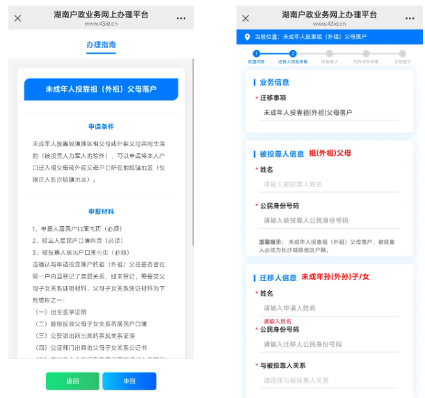 未成年人投靠祖(外祖)父母落户(限长沙)