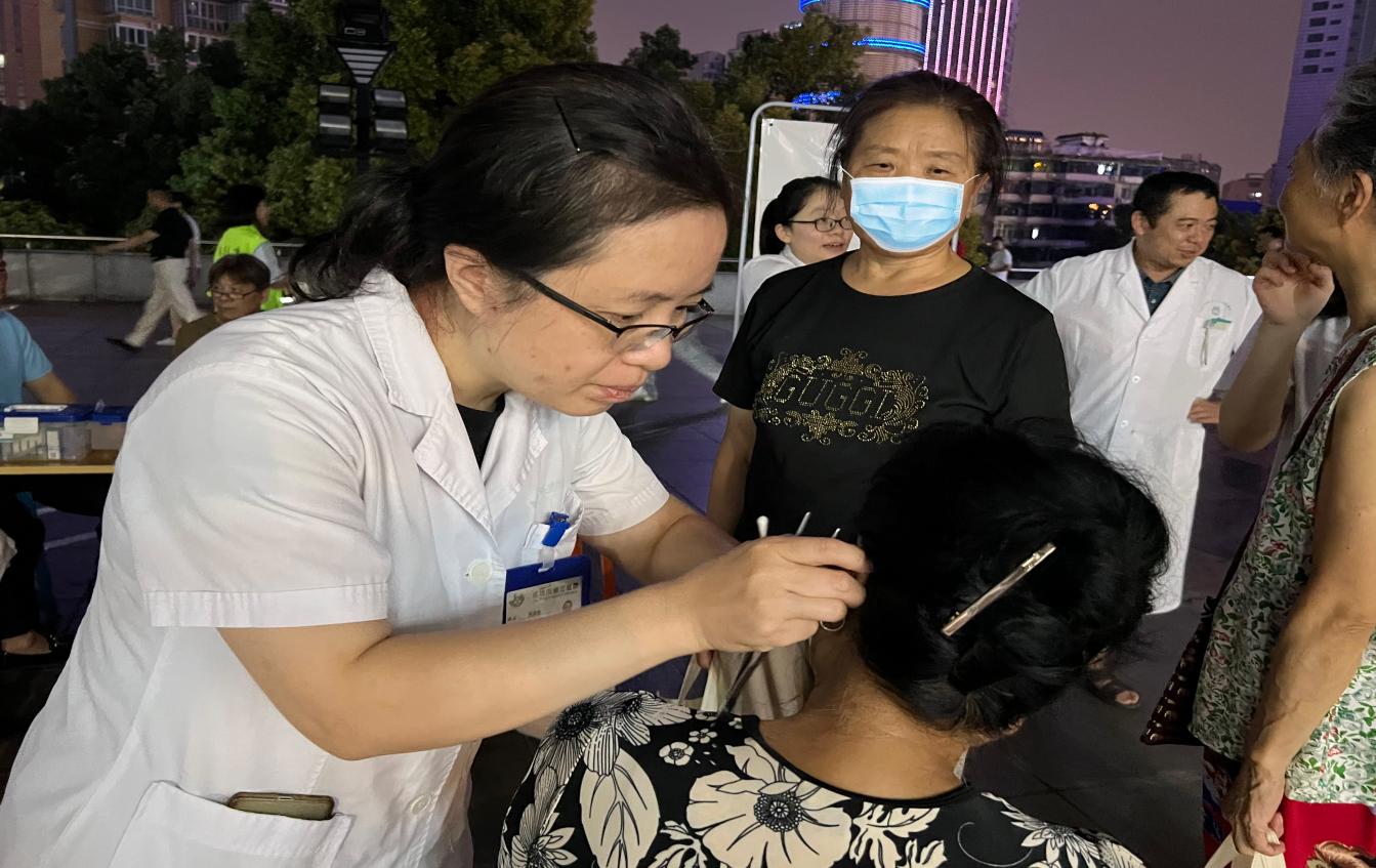 长沙市第三医院中医科专家给居民进行耳穴压豆体验