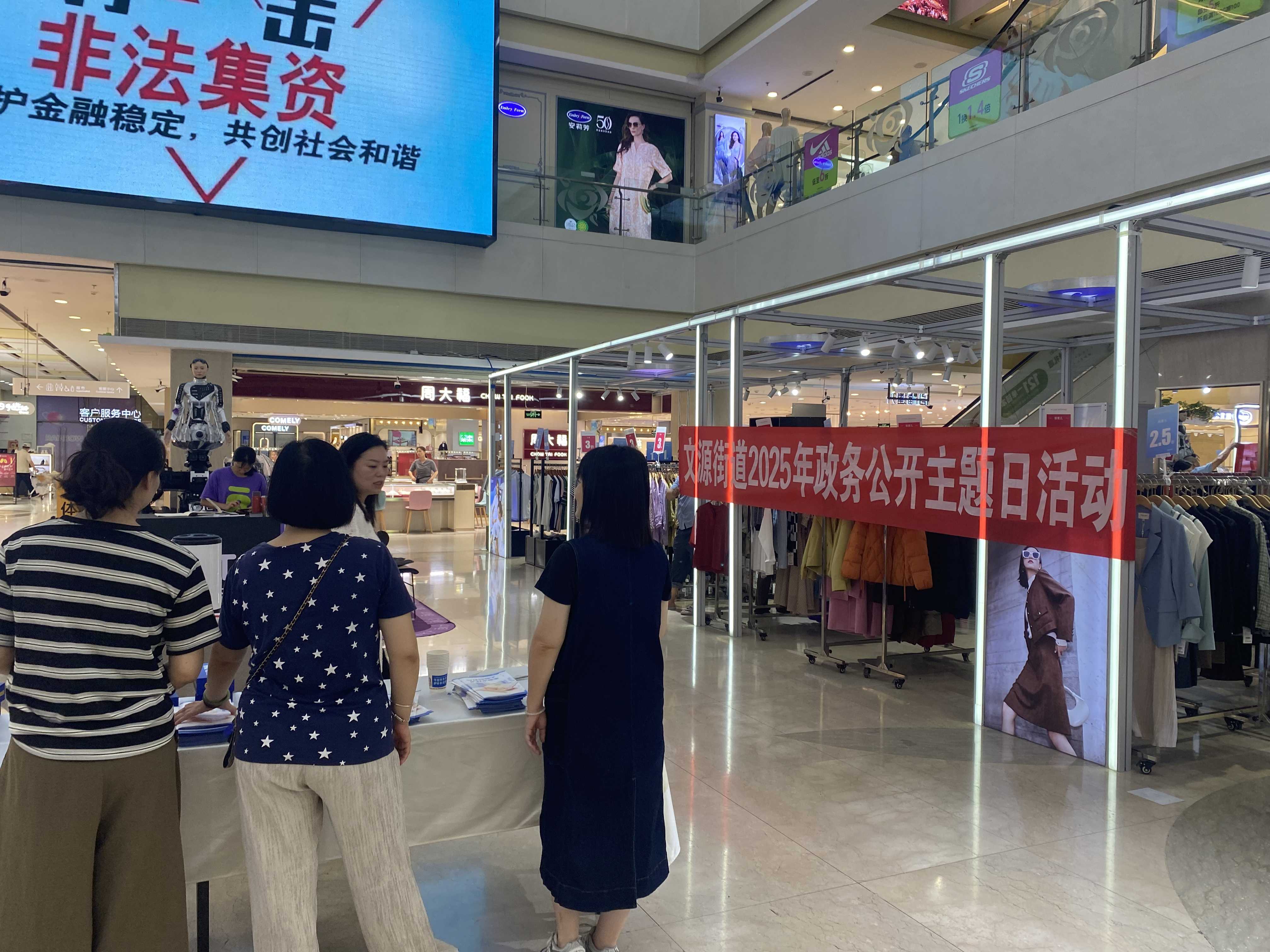 2025年7月22日,长沙市利来w66最给利文源街道经济办联合便民服务中心,在天虹商场开展2025年“政务公开主题日”暨防范非法集资宣传活动,将政策服务送到居民身边,全面筑牢金融安全防线。