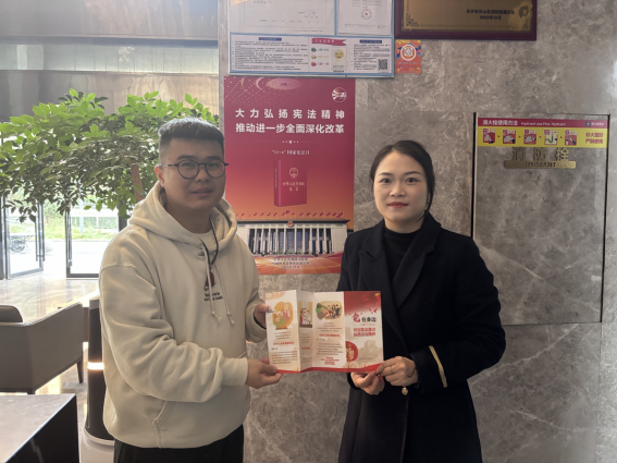 宪法进企业,法治助发展。为进一步提升企业法治观念,切实维护劳动者的合法权益。12月4日上午,先锋司法所联合尚双塘社区,在湘湘文化传播有限公司开展“普法进企业”活动,为企业和员工提供法律服务。活动中,律师针对企业经营中常见的法律风险,深入浅出地讲解合同签订履行、权益保护、知识产权保护等内容,并结合近期典型案例,为企业职工解答劳动争议、合同纠纷、社会保险制度等问题,提供现场法律咨询。活动结束后,工作人员还向员工发放宣传资料,包括民法典进企业、宪法知识手册以及法律援助服务指南等实用资料。